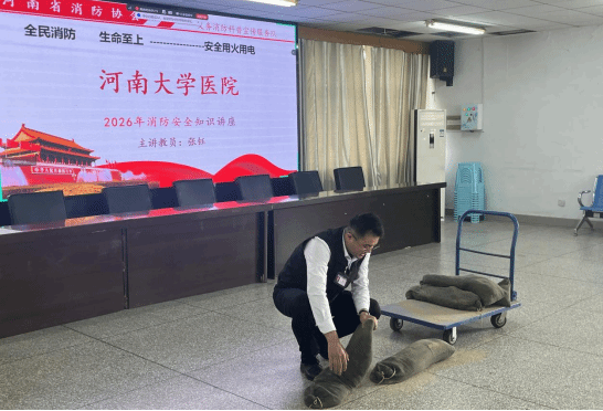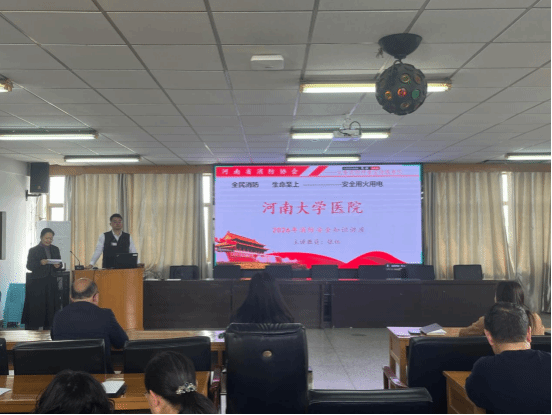 为深入贯彻学校消防安全工作部署,落实《关于在全校组织开展2026年度消防安全教育培训与应急演练工作的通知》要求,扎实推进学校安全生产三年攻坚整治行动收官工作,4月9日下午,河南大学医院在明伦校区五楼大会议室举办2026年度消防安全培训和防汛实操演习。全院人员参加,会议由副院长朱萌主持。